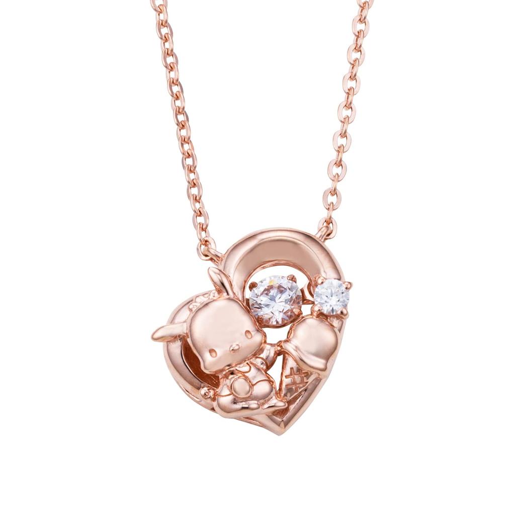Pochacco Sanrio Sanrio Characters Dancing Stone Necklace Pendant Open Heart Pink Gold Silver 925 Cubic Zirconia [White Clover] SAPOC-N005PG