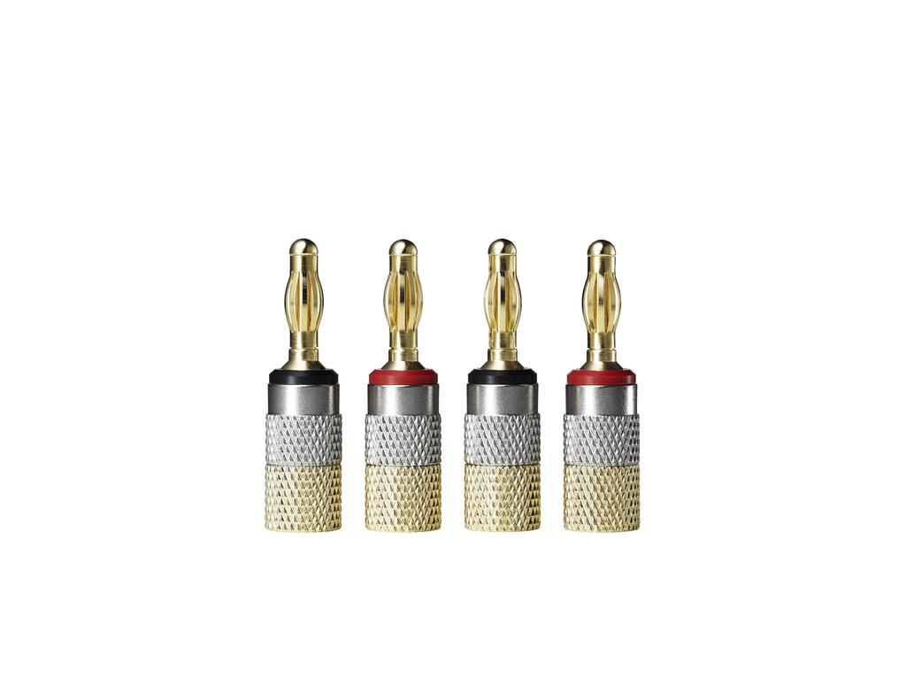 Compatible with speaker cables with conductor aggregate diameter up to 3.7mm - Compatible with banana jacks with diameters of φ4.0mm to 4.5mm. Because the connection with the speaker is stable, you can enjoy the original sound quality of the sound source without sacrificing it. - Rear connection type, can be combined with speaker cables with a conductor aggregate diameter of up to 3.7 mm. The cable can be folded into the sturdy metal body and securely fixed by tightening the screw. In addition, the red and black rings allow you to quickly identify the cables that have been set up.・Gold plating is used for the surface treatment of the plug.The gold plating is resistant to aging and transmits audio signals efficiently.・By covering the protective tube that comes with the accessory with the protective tube that prevents plugs from touching together, you can prevent plugs from touching and causing a short circuit.