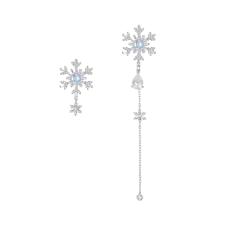 [Unique Design] A cute asymmetrical design with a snowflake motif.The asymmetrical design is unique and trendy and stylish.The snowflake earrings are carefully finished by craftsmen, and the blue zirconia inside the earrings gives off a beautiful shine, giving it a very cute image, like a spirit of winter.The high-quality shine using zirconia creates a gorgeous look around your face.