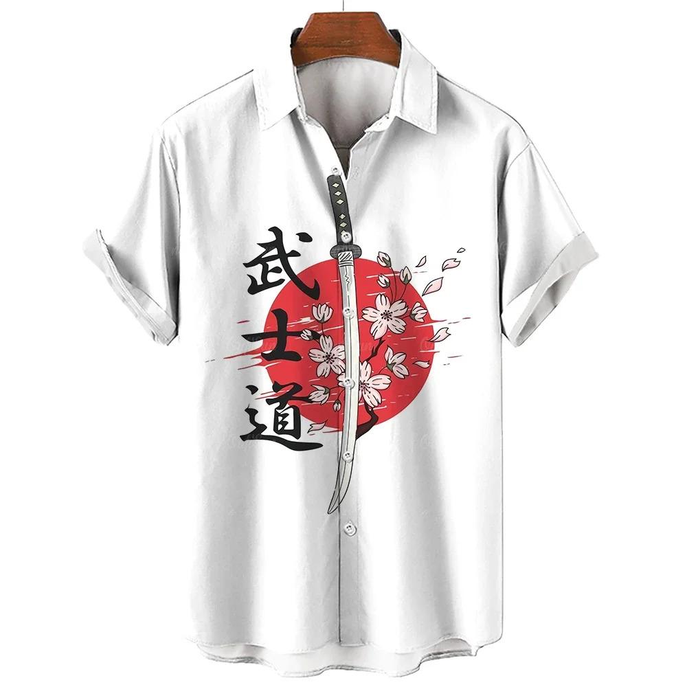 Summer Oversized Men's Hawaiian Shirt Short Sleeve Cardigan Top 3D Printed Japanese Samurai Pattern Casual Fashion Men's Shirt