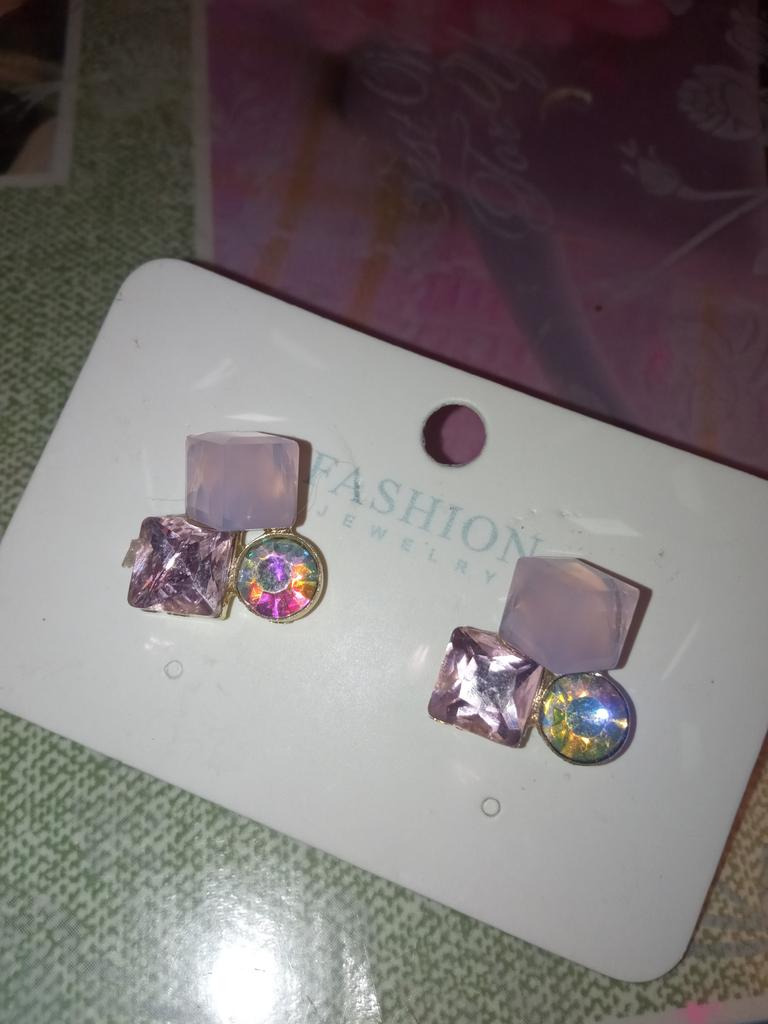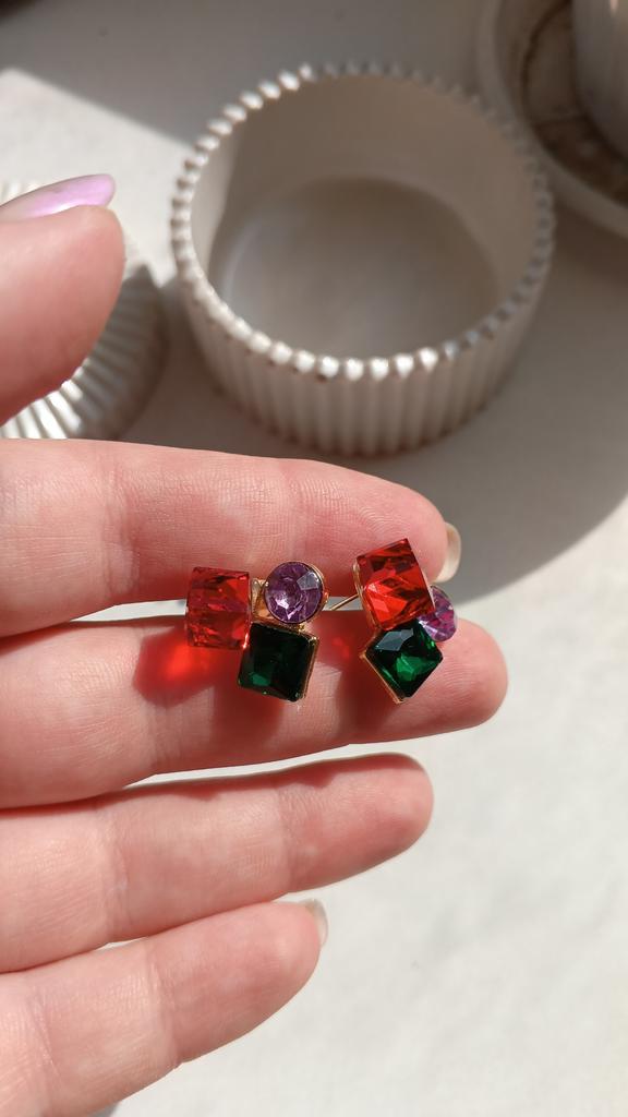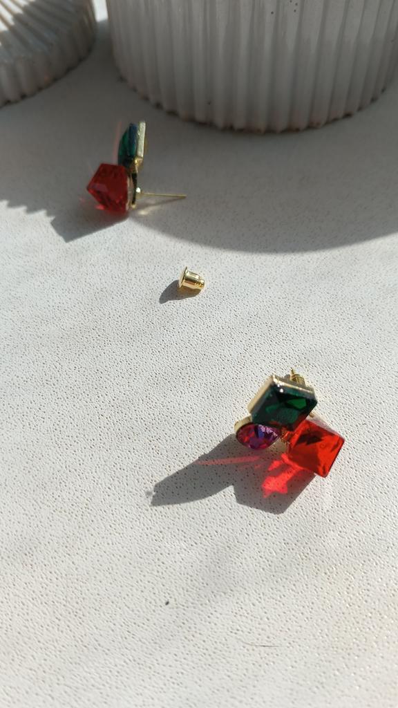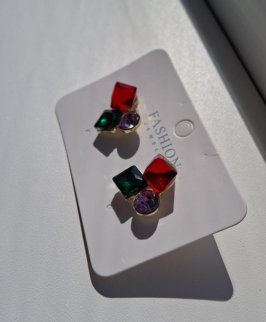 Niche design sense color three-dimensional geometric crystal earrings women's 2023 new versatile sweet stud earrings — buy online with free worldwide shipping!