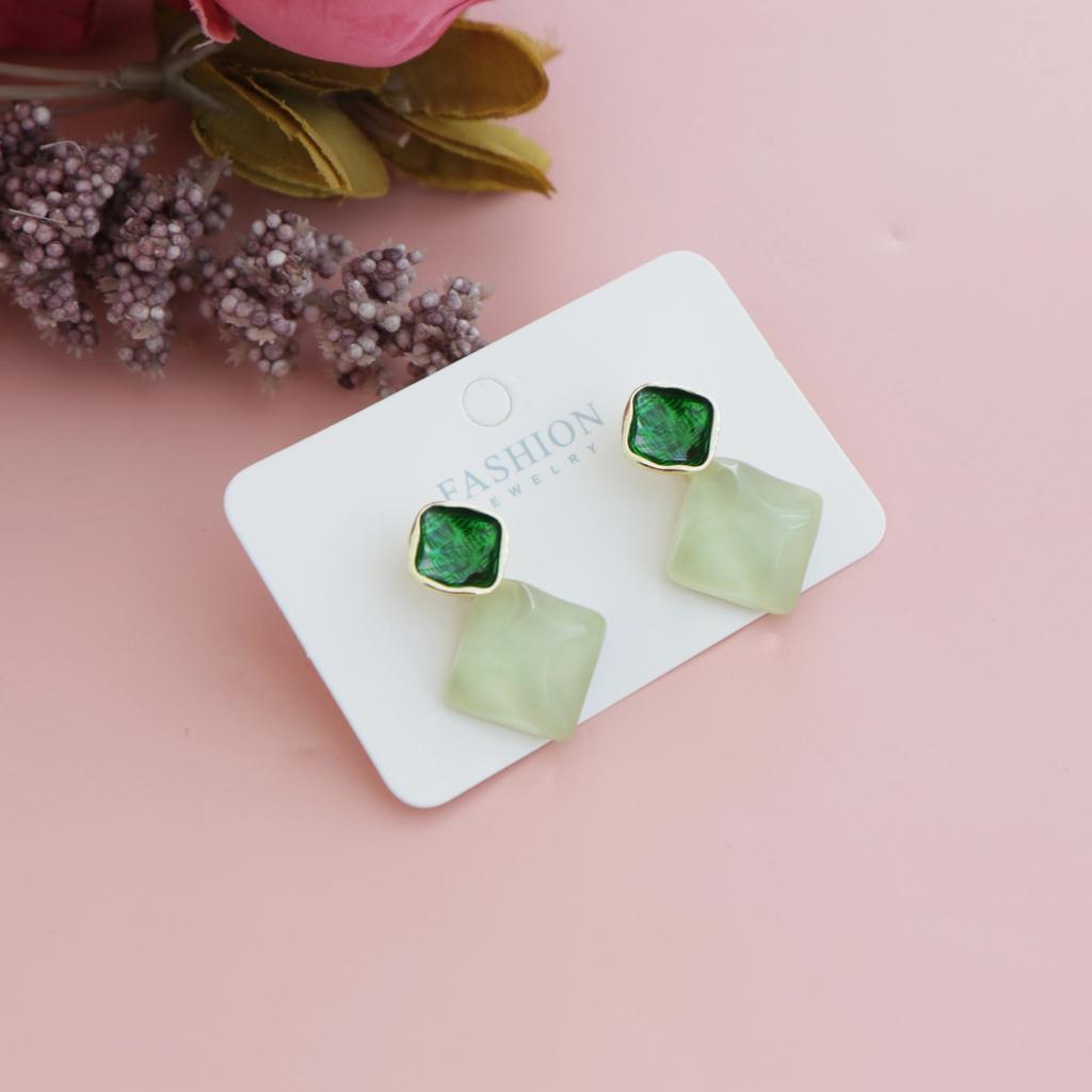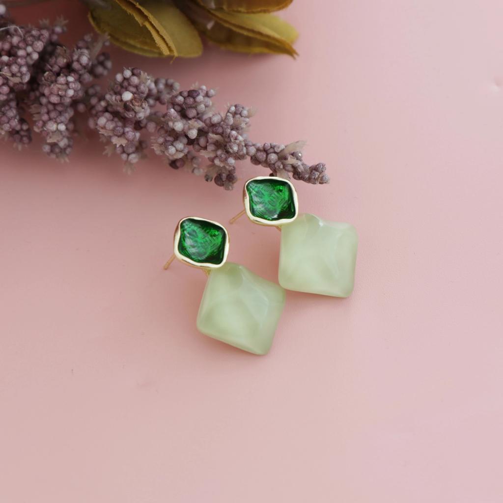 Fresh Dripping Oil Sparkling Square Stud Earrings, Niche High-end Color Rhombus Earrings Ins Simple Style Earrings
