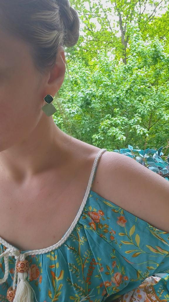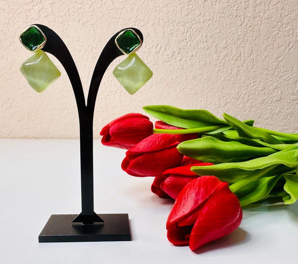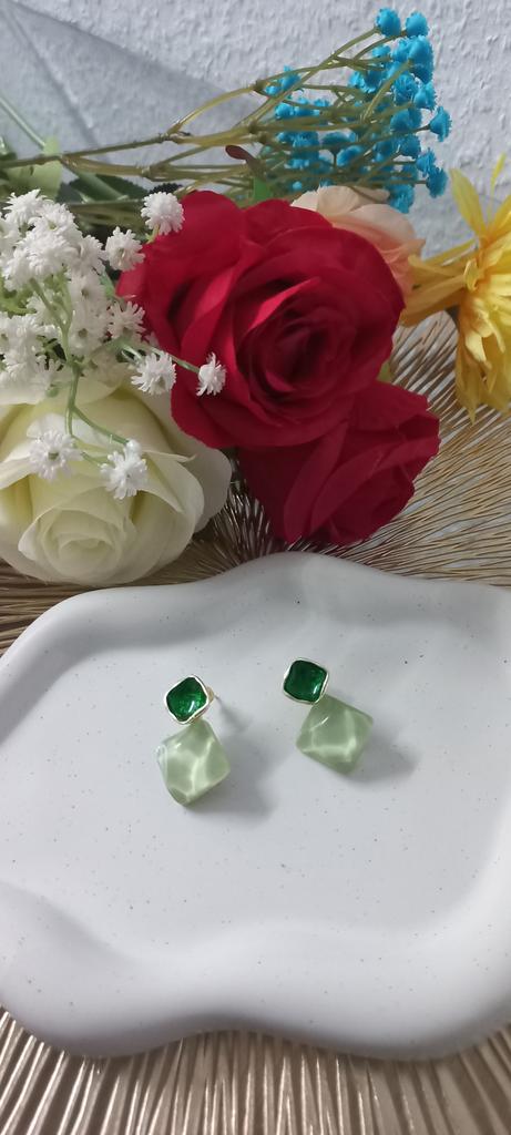 Beautiful earrings👍👍👍 Delivery time to Germany: 19 days! The product was well packaged and arrived undamaged. Included in delivery are beautiful light earrings 👍👍👍👍 The earrings are light, you don't feel them on your ears at all. The product is available in two different colors. I ordered it in green, and it's exactly as pictured.. 🔝👍Beautiful design, perfect cute color.The color is exactly as pictured. They go great with an evening dress or for everyday use. 👍 The earrings shine beautifully, especially in the sun. Material: Metal. Nice quality!🔝They look like expensive jewelry. I am very happy to recommend the product!!! Thank you Joom and the seller!😘