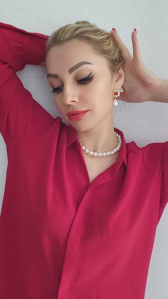 Retro burgundy pearl earrings women's Hong Kong style niche design high-end stud earrings temperament earrings — buy online with free worldwide shipping!