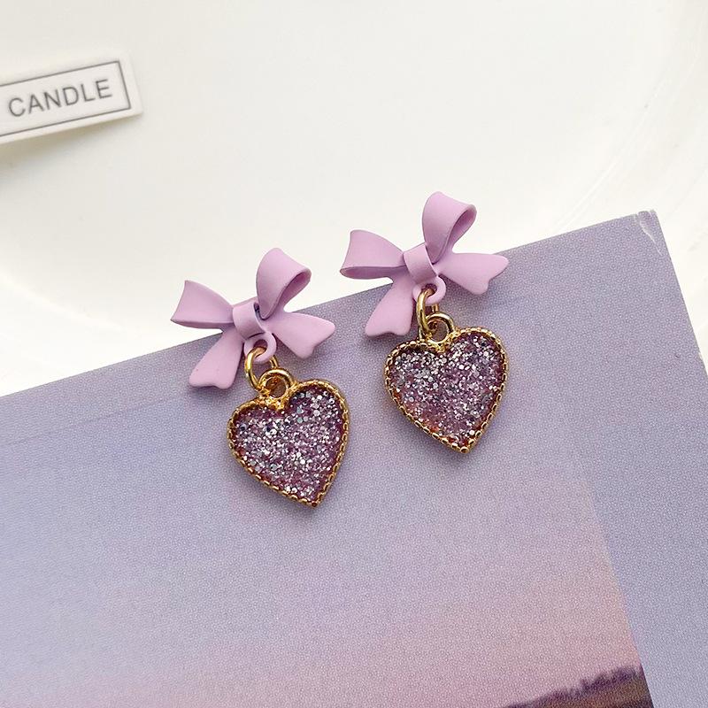 Shiny Resin Rhinestone Heart Drop Earrings for Women Elegant Purple Hollow Out Bow Knot Dangle Earrings Cute Sweet Jewelry Gift — buy online with free worldwide shipping!