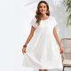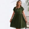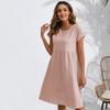 Fashion Summer Round Neck A-line Loose Dress Women Elegant Slim Fit Pockets Temperament Casual Dresses Woman Simple Vintage Slim Female Dress 26482
