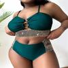 2025 Patchwork Hollow Two Piece Plus Size Bikini Women Strapped High Waist Swimsuit Brazilian Beach Lady Bathing Suit — buy products online with free worldwide shipping!