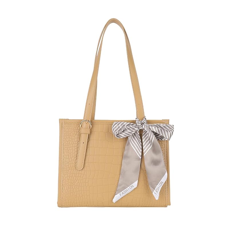 [enoco Land] Tote Bag Ladies Commute Commuting To School Large Capacity Autumn Coordination Adult Crocodile Pattern Elegance with Ribbon (Khaki) — buy products online with free worldwide shipping!