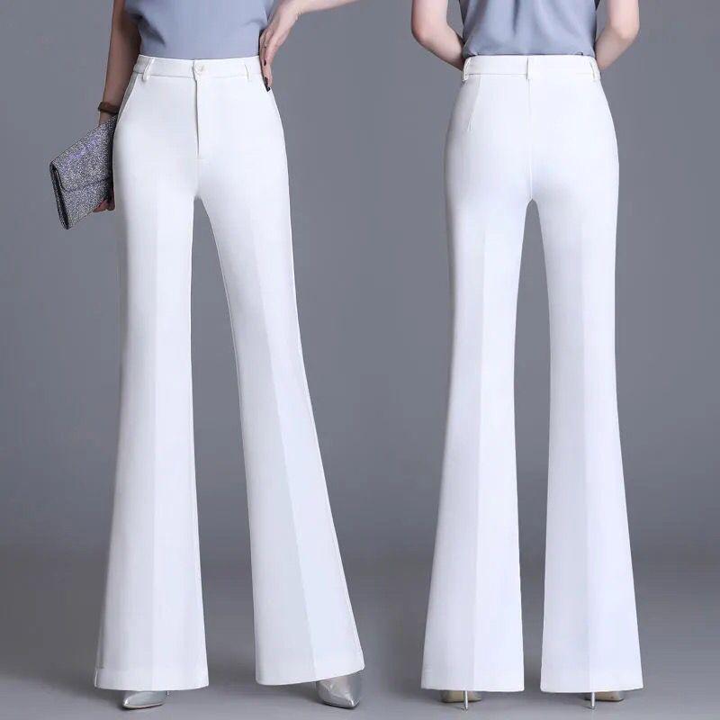 White High-Waist Flared Pants - Women's Loose Fit, Korean Style, Wide-Leg, Slim Fit, Versatile Casual Wear — buy online with free worldwide shipping!