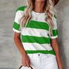 Blue White Stripe Patchwork Women's Tees Top Summer Short Sleeve Round Neck Slim Pullover Tops Fashion Vintage Female Clothing