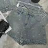 Women's Heavy-Duty Hot Diamond Denim Suit - Korean Style, Spring/Autumn 2024: Short Jacket + Skirt Pants Two-Piece Set