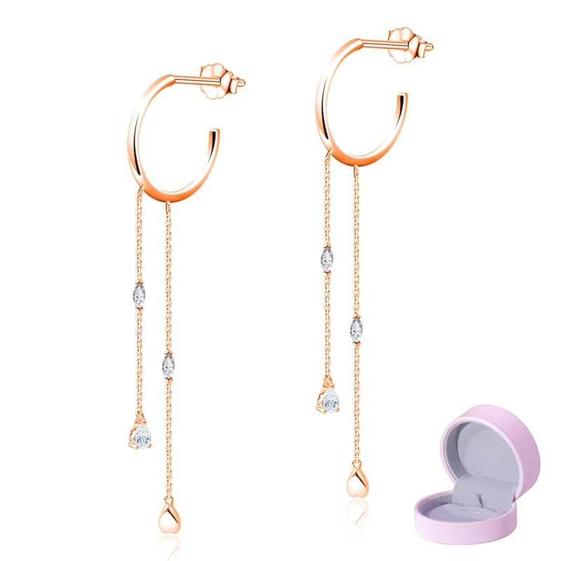[Stunning Craftsmanship] The metal part of the women's earrings is made of silver that is gentle on the skin, and the surface layer is plated with 18k pink gold, adding to the texture and luster of the earrings.The dangling half-hoop earrings are made of many sparkling high-grade zirconias, and the two-row spacing design shows sparkle at different angles, exuding an elegant charm at any time.These metal allergy-free silver earrings are simple yet elegant and comfortable to wear.It is one of the fashion items that can be used both casually and formally.