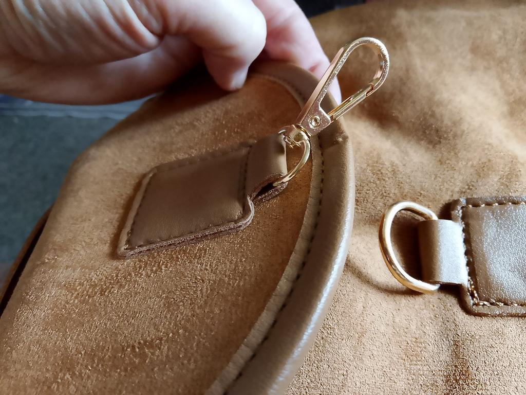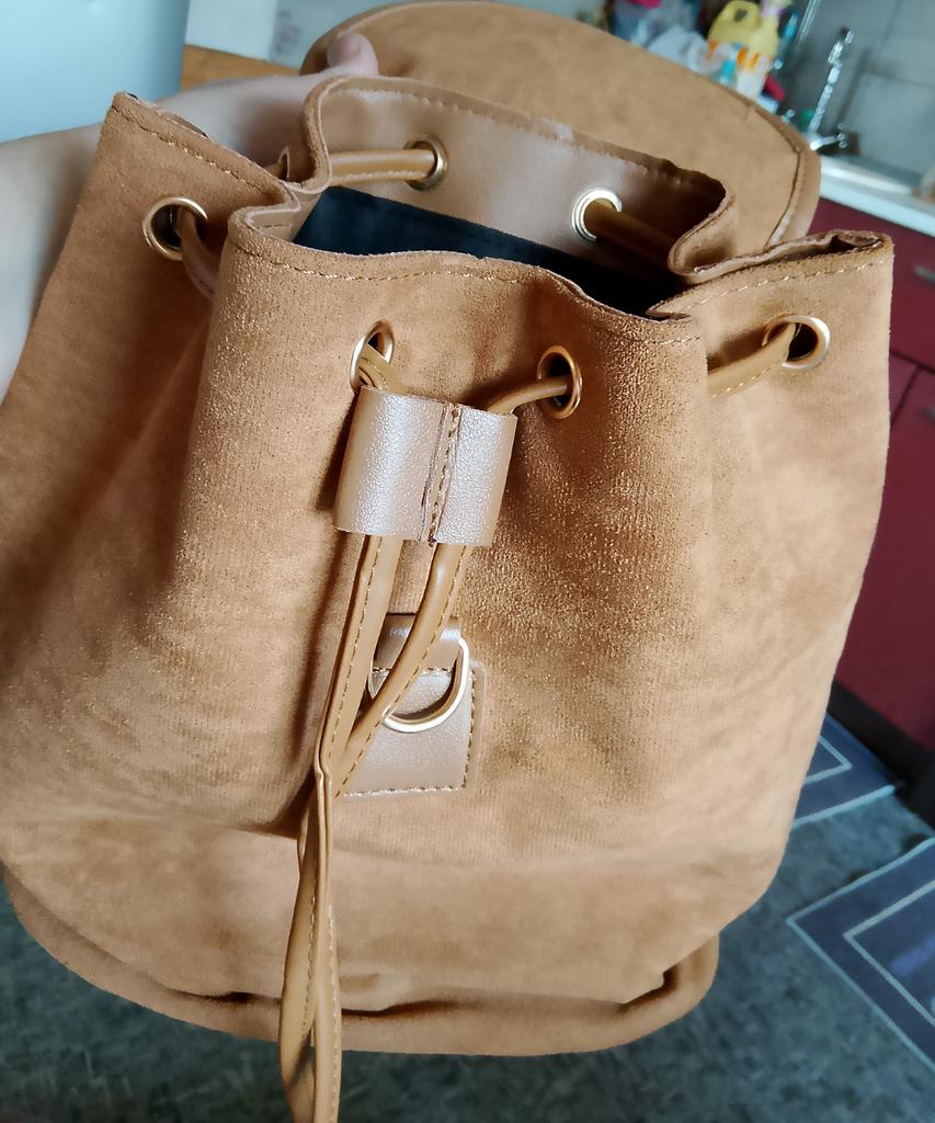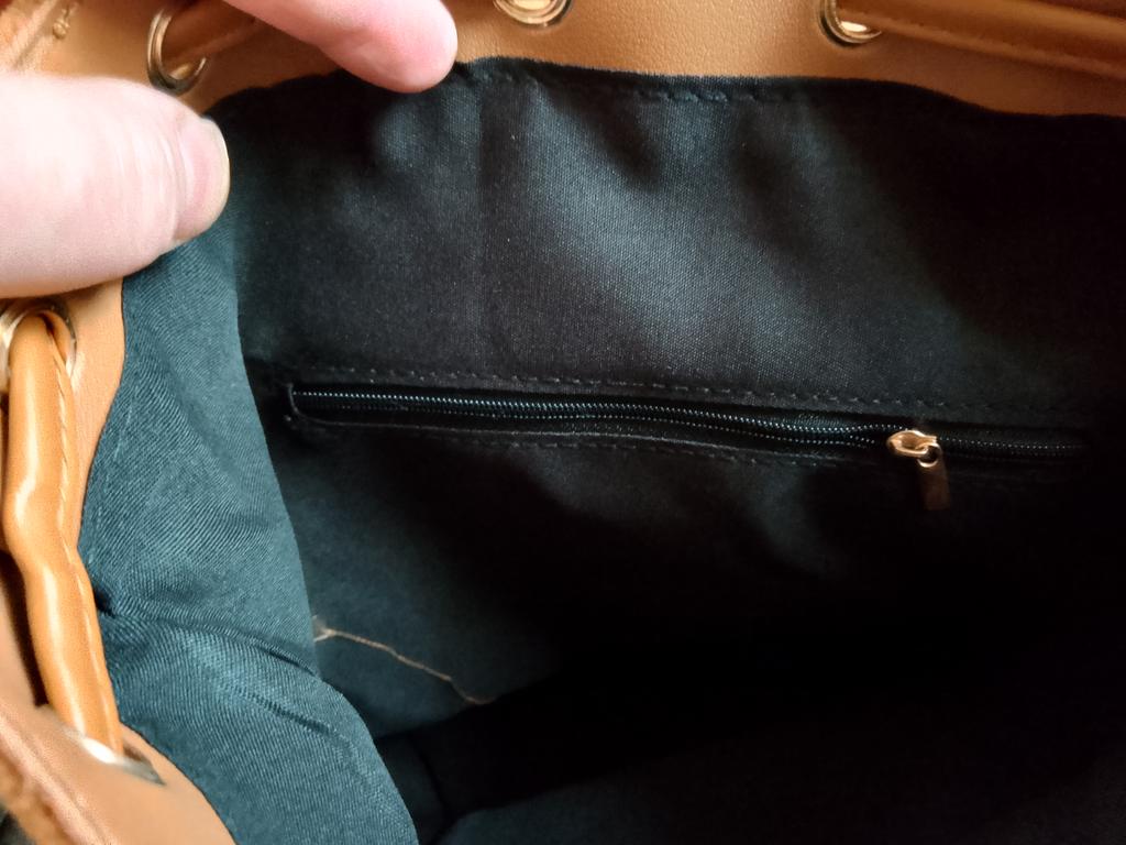It's a pity that one compartment is large and one small with a zipper. There are no pockets on the back or sides! And it fastens with a carabiner, which is not convenient for everyone.... But the appearance is very nice!!! 👍