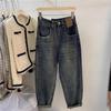 Plus-Size High Waist Retro Harem Jeans for Women - Pear-Shaped, Slim, Nine-Point Straight Leg Carrot Pants for Spring and Autumn