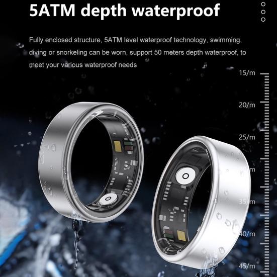 The precise sleep monitoring feature allows you to view daily, weekly, and monthly sleep data in the app. Detailed reports on deep sleep, light sleep, eye movements, and wake-up times help improve your sleep quality. The health ring is ultra-thin, comfortable to wear, waterproof, and made of high-quality materials suitable for all activities from exercise to shower.