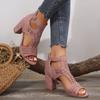 2025 Summer New Large Size Shoes Fashion Thick Heel High Heel Sandals Hollow Fish Mouth Sandals