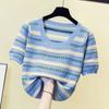 Women's Summer Thin Ice Silk Short-sleeved T-shirt Striped Square Neck Slim Thin Blouse — buy online with free worldwide shipping!