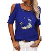 Women Fashion Round Neck Short Sleeve Top Ladies Summer Casual Off Shoulder Floral Printed T-shirt