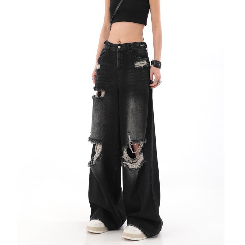Women's Spring and Summer Broken Jeans Straight Loose Wide-leg Pants — buy online with free worldwide shipping!