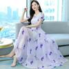 Summer 2022 Retro Slim-Fit Printed Dress with Waist Definition and Short Sleeves