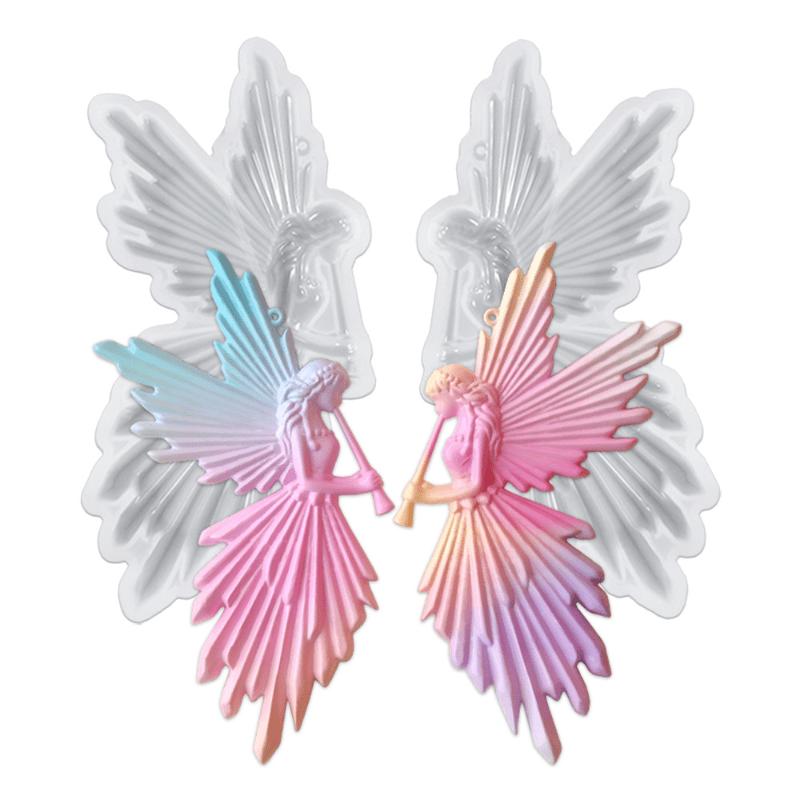 Crystal Drop Glue DIY Angel Mold Symmetrical Left and Right Blowing Flute with Wings Fairy High Mirror Silicone Mold — buy online with free worldwide shipping!