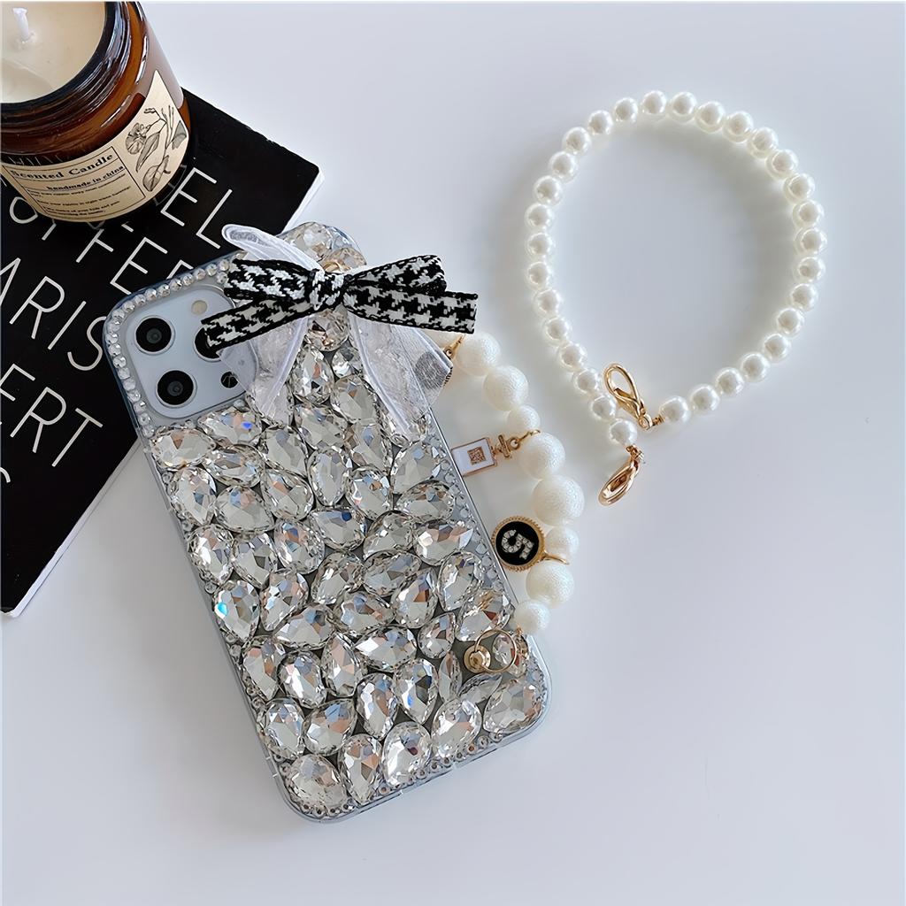 Fashion Full Screen Crystal Phone Case with Bracelet for iPhone 16 15 14 13 12 11 Pro Max