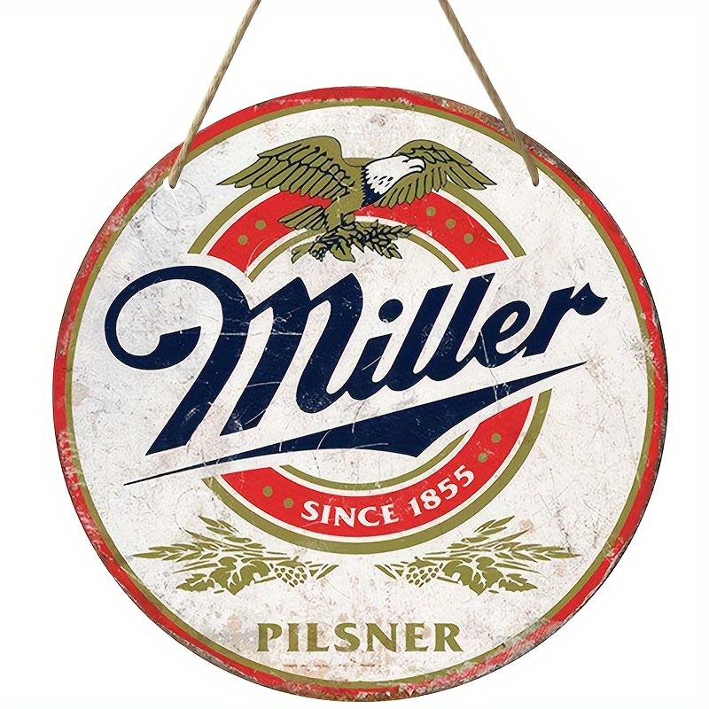 Rustic Wooden "Miller Since 1855" Beer Tin Sign, 8x8 Inches, Vintage Metal Wall Art Decor for Home, Restaurant, Bar, Cafe, Garage Decor