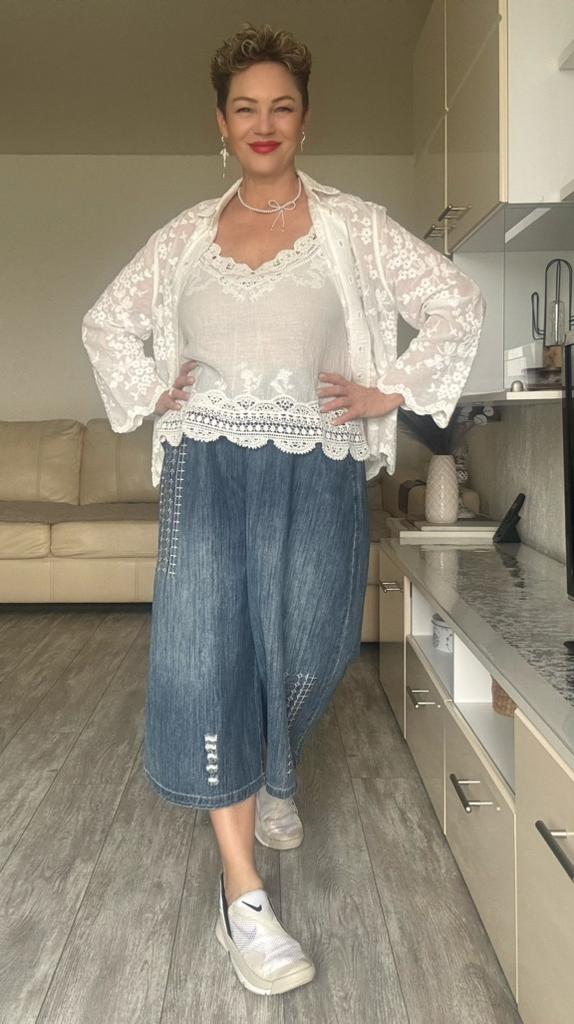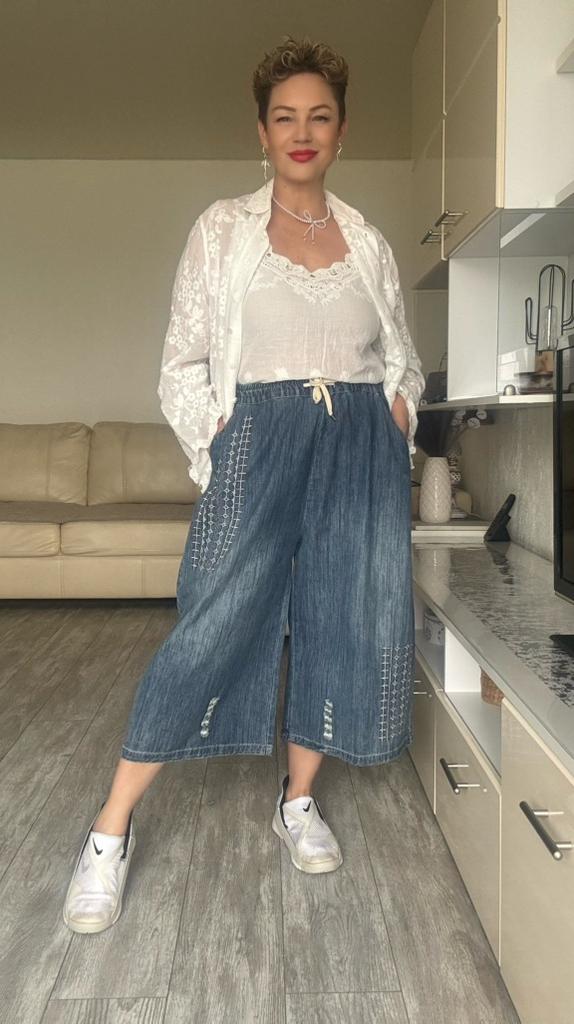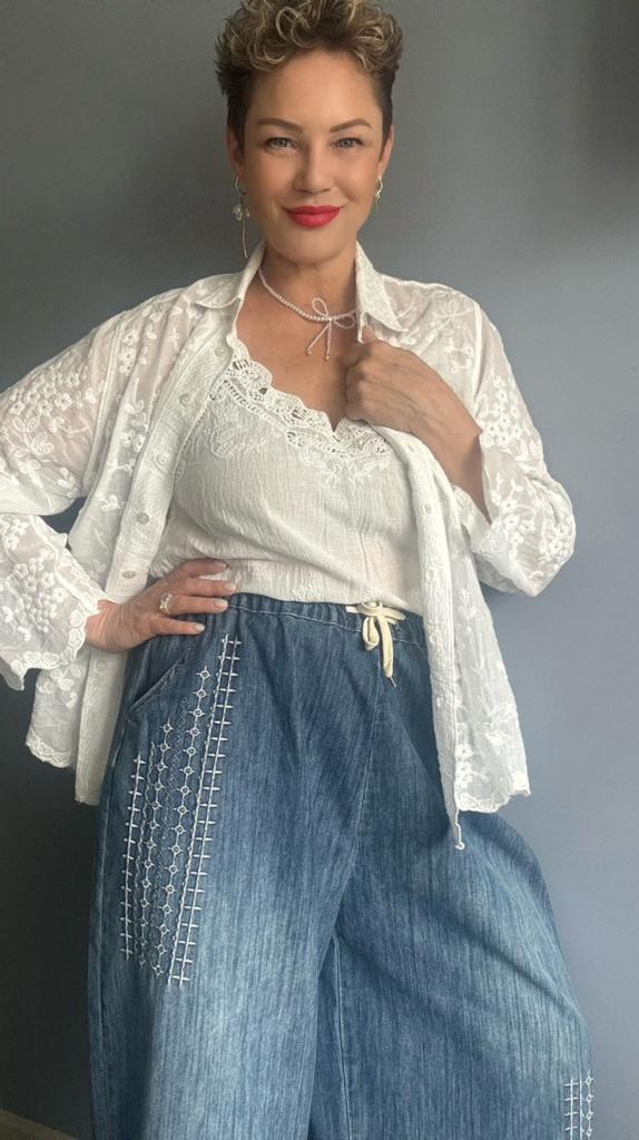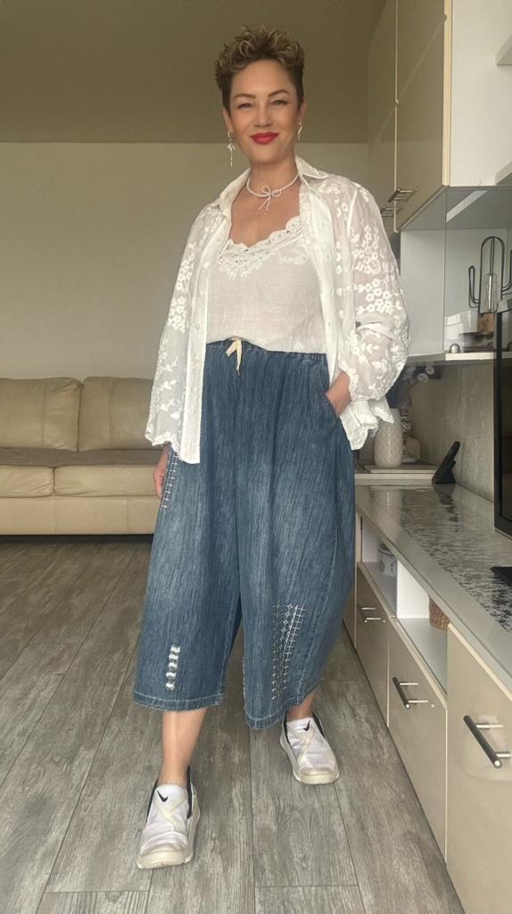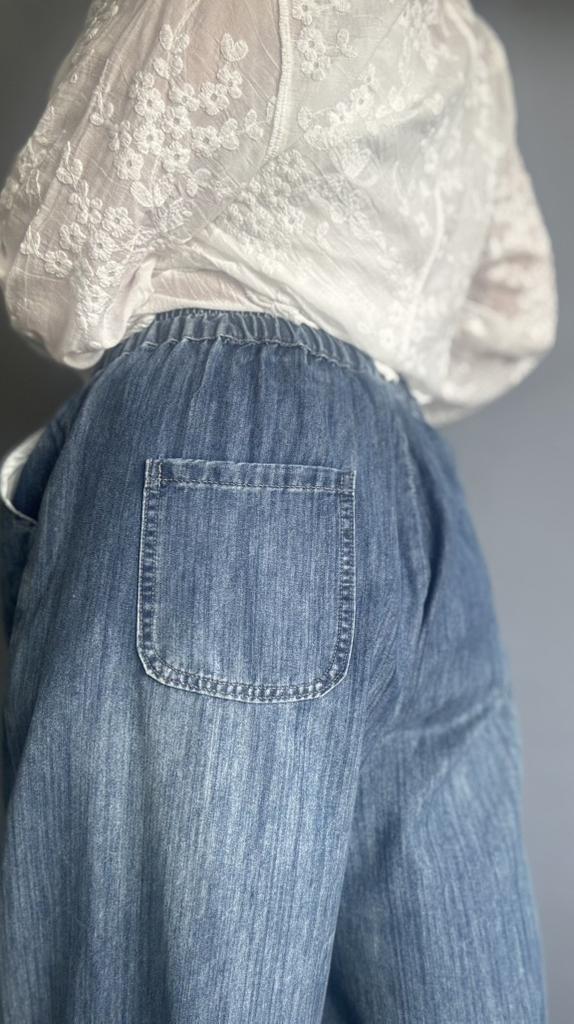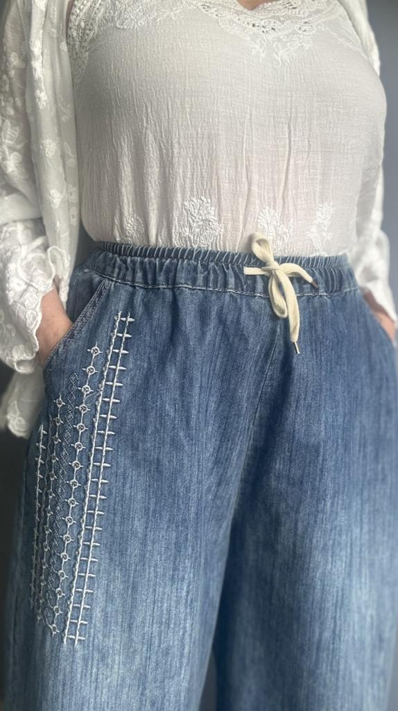 Korean Fashion Summer Women Wide Leg Jeans Elastic Waist Drawstring Ripped Vintage Denim Capris Casual Loose Plus Size Baggy Embroidery Short Jeans — buy online with free worldwide shipping!