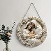 Wooden Sign Guard Jesus Round Sign for Church Door Wall Hanging Decor Ideal Gift Simple and Stylish Toilet Door Hanging Decor, Unisex Washroom Sign