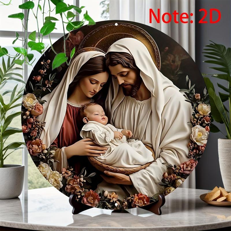 Creative "Holy Family" Round 2D Wood Logo, Garland Decoration, Home Gifts, Living Room, Bar, Cafe, Round Holiday Art Deco, Simple and Stylish Toilet