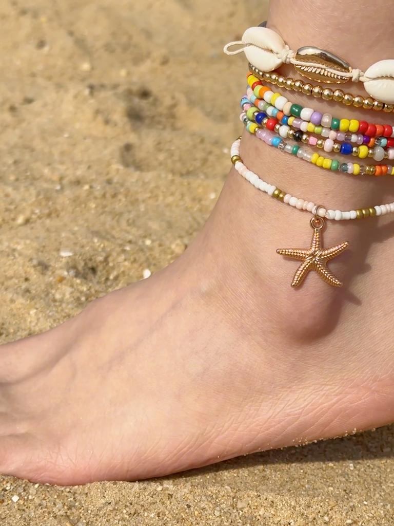 7PCS Boho Fashion Shell Color Beads Anklet Set Jewelry for Women Girls Beach Holiday Handmade Bijoux — buy online with free worldwide shipping!