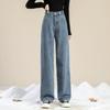 Women's Winter Retro High-Waist Wide-Leg Plush Jeans: Light-Toned, Thick, Loose, and Slimming.