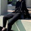 Women's Cozy Hooded Sweater & Knitted Carrot Pants Set - Ideal for Autumn/Winter