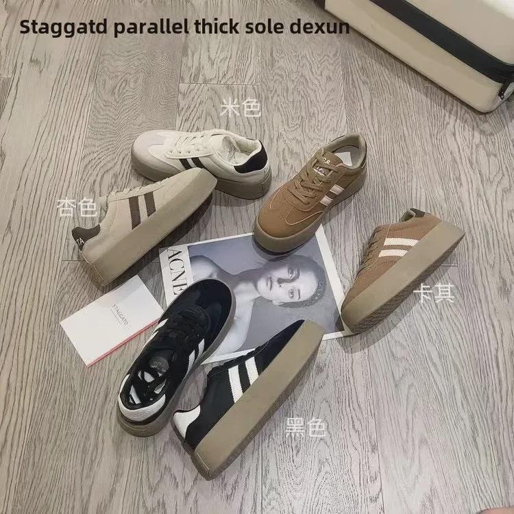 "Double-Bar Thick Sole Dexun Women's Retro Casual Korean White Shoes"