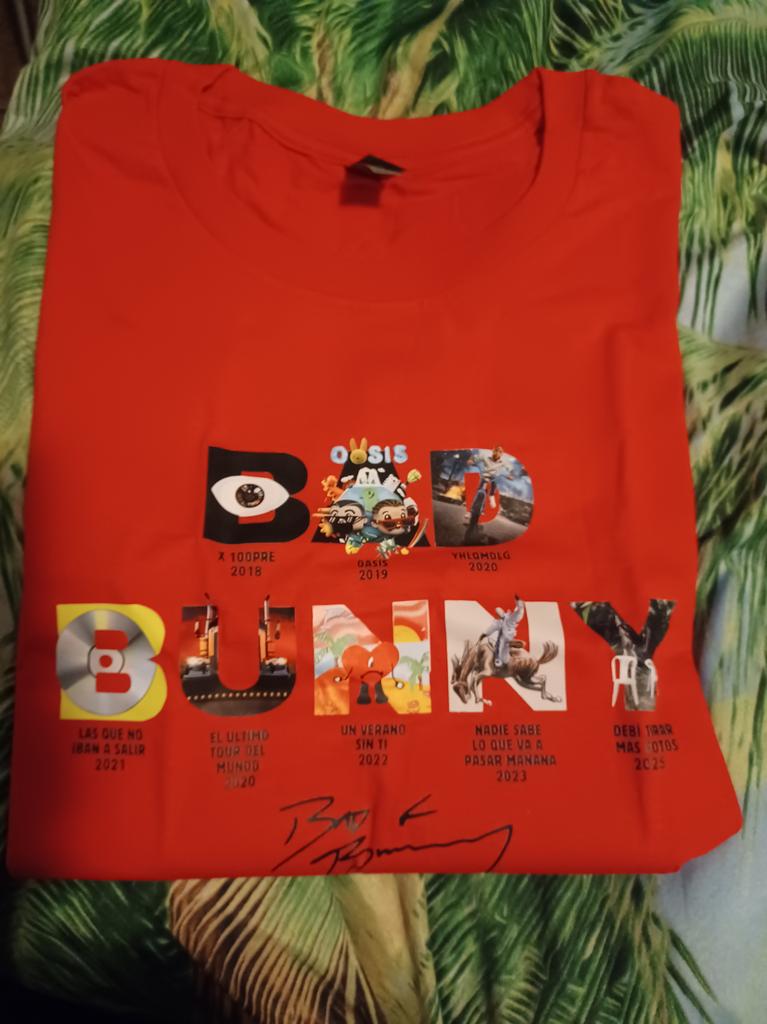 Beautiful t-shirt. Exactly like in the picture!!! I'm completely blown away! Also by this red color!! I'm going to wear this for the Bad Bunny concert!!
