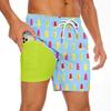 Men's Summer Double-layered Shorts Drawstring Swim Trunks Beach Printed Swim Pants with Pocket