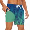 Men's Summer Double-layered Shorts Drawstring Swim Trunks Beach Printed Swim Pants with Pocket — buy online with free worldwide shipping!