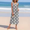 Women's Summer Polka Dot Print Dress Sleeveless Button Down Casual Loose Long Beach Sundress — buy online with free worldwide shipping!