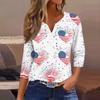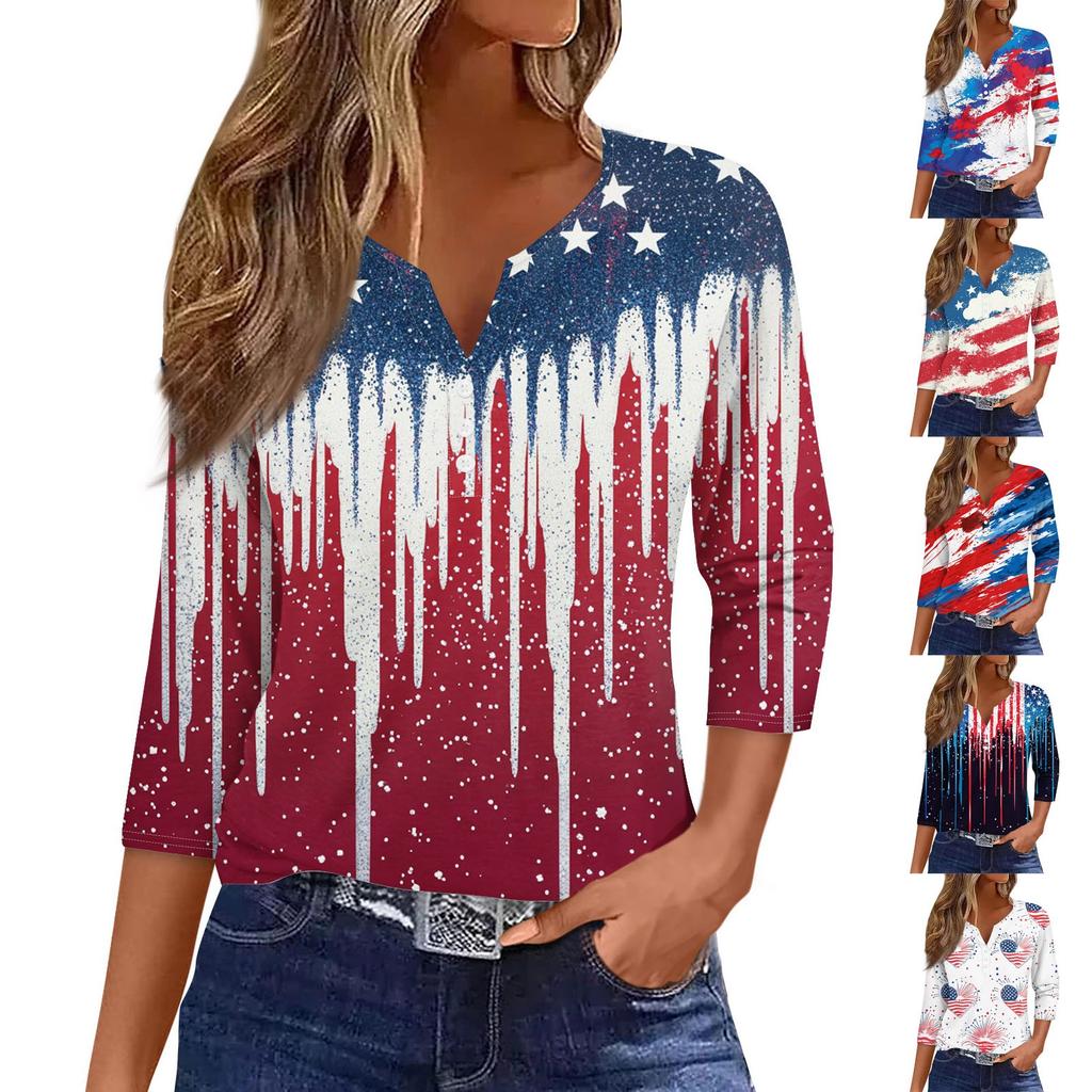 Women's T Shirt Print Button 3/4 Sleeve Daily Weekend Fashion Basic V- Neck Regular Top — buy online with free worldwide shipping!