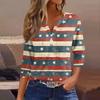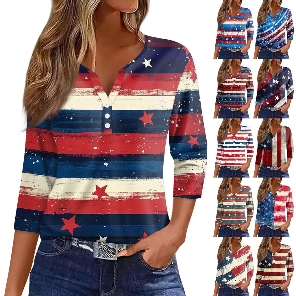 Women's T Shirt Tee Independence Day Printed Button 3/4 Sleeve Tunic Daily Weekend Fashion Basic V- Neck Regular Top — buy online with free worldwide shipping!