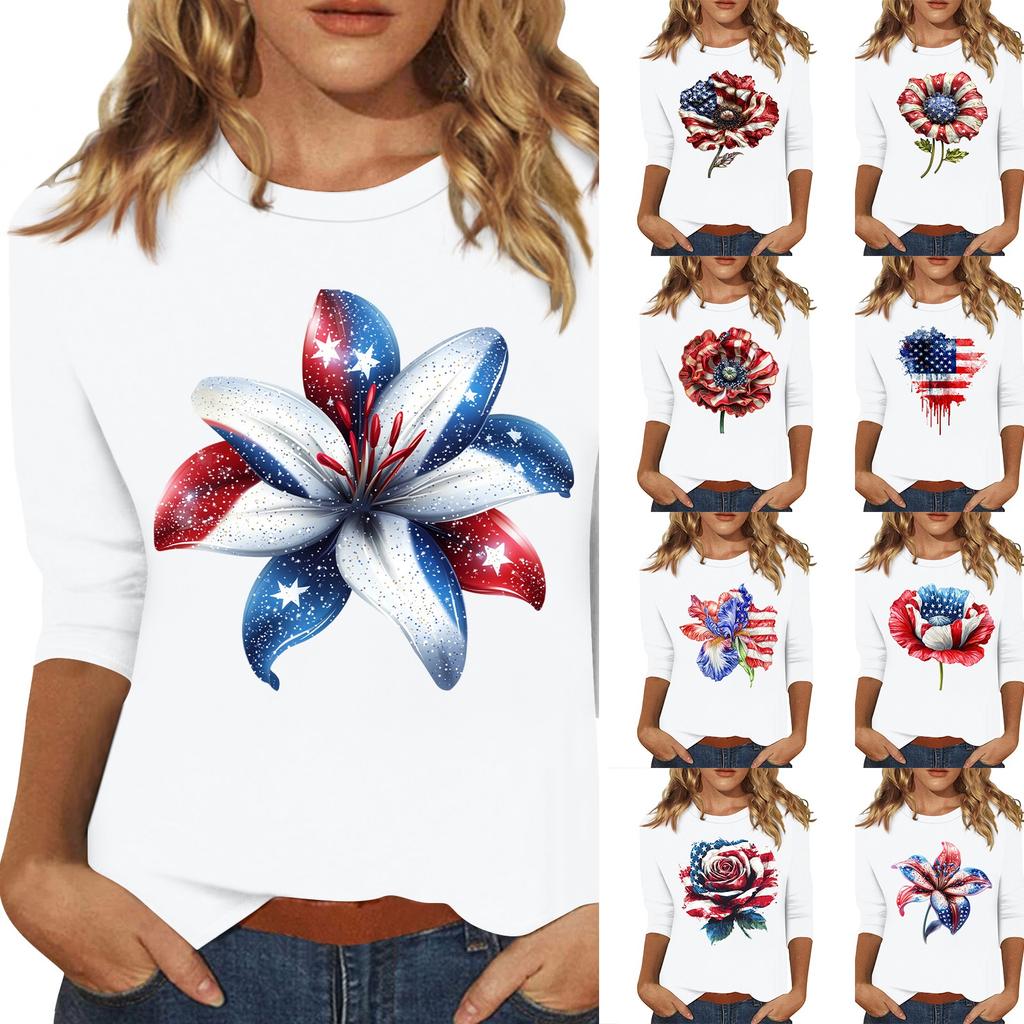 3/4 Sleeve Tops For Women T-Shirt Casual Print Tops T Shirt Round Neck Pullover Blouse
