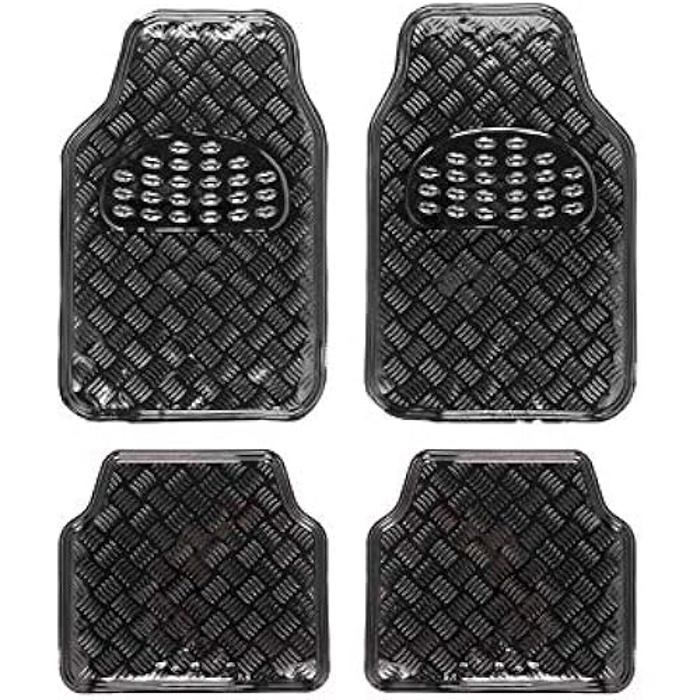 Tapis de voiture - BCCORONA - 4 pièces - Caoutchouc et Aluminium - Noir antidérapant