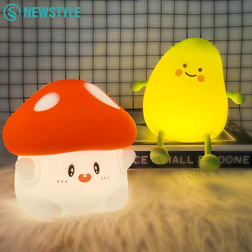 Cute Mushroom Night Light Timing Nursery Sleeping Nightlights 2 Level Brightness Rechargeable Bedside Touch Lamp For Baby Room
