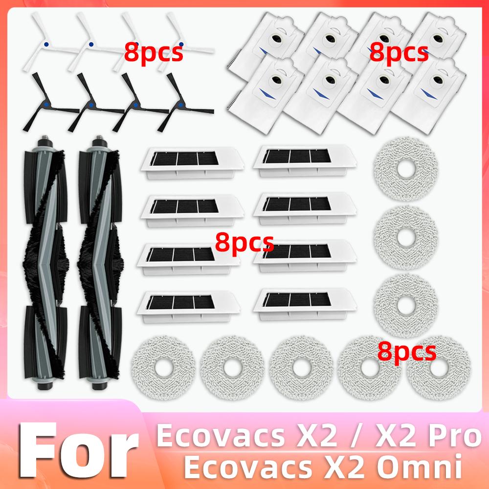 For Ecovacs Debot X2 / X2 Pro / X2 Omni Robot Vacuum Cleaner Main Side Brush HEPA Filter Mop Pads Dust Bag Replacement Parts