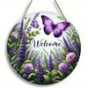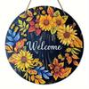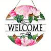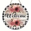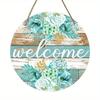 Vintage Welcome Flower Plant Sign, Round Wooden Wreath Sign for Home Room Farmhouse Porch Bar Cafe Wall Decor, Gift for Friends