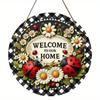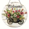 Vintage Welcome Flower Plant Sign, Round Wooden Wreath Sign for Home Room Farmhouse Porch Bar Cafe Wall Decor, Gift for Friends — buy online with free worldwide shipping!