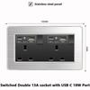 Luxury Brushed Stainless Steel Wall Light Switch,Universal 5pin 18W Type-C Quick Charging outlet,UK Standard Dual USB Socket