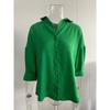 IHUASU Single Breasted Pleated Lapel Shirt Women's Solid Color Pull-up Sleeve Top