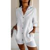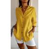 IHUASU Single Breasted Pleated Lapel Shirt Women's Solid Color Pull-up Sleeve Top — buy online with free worldwide shipping!