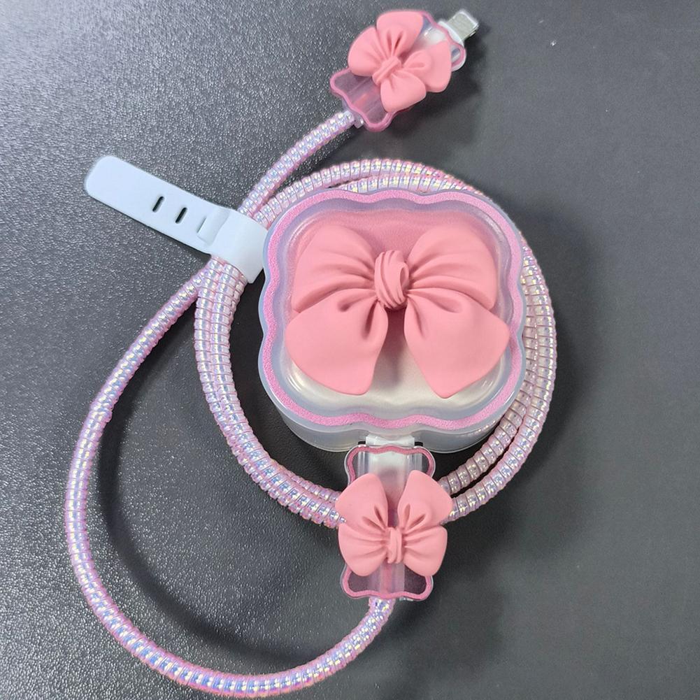 Specially customized for ios 20W fast charging head, the integrated buckle design can be installed in just 3 seconds. Whether paired with an iPhone, AirPods, or iPad, the bow protector can turn the charging device into a fashionable item, quietly blooming exquisite charm at the office desk or coffee shop